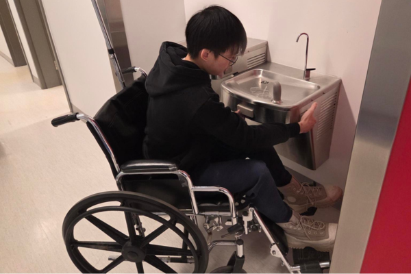 Heavy doors and poorly timed automatic doors proved challenging for volunteer Jiahao Deng, from The Institute. “Every time I tried to open the doors, it was really difficult,” he says. It took three attempts to get through the main entrance, but the biggest challenge came from doors without automatic entry. “Because of my inexperience, I had to use the doorframe to pull myself through, and when I tried to push the doors open, the wheelchair would roll backward.”