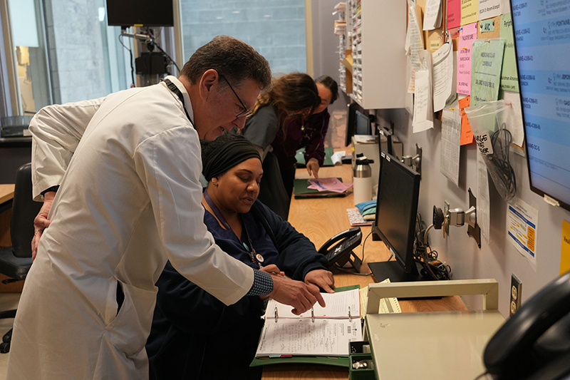 Next, he makes rounds through the units. He speaks with nurses, occupational therapists, physiotherapists, and neurosurgeons.